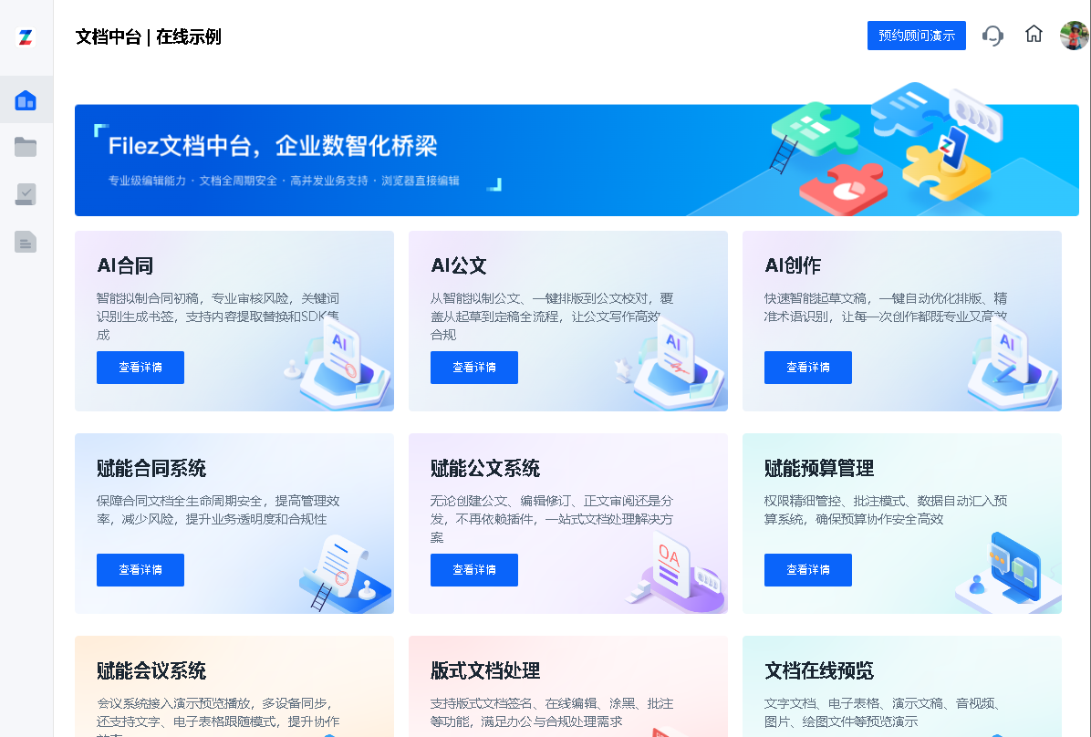 Users can experience the Document Platform's online editing and preview capabilities from scenario demonstration documents